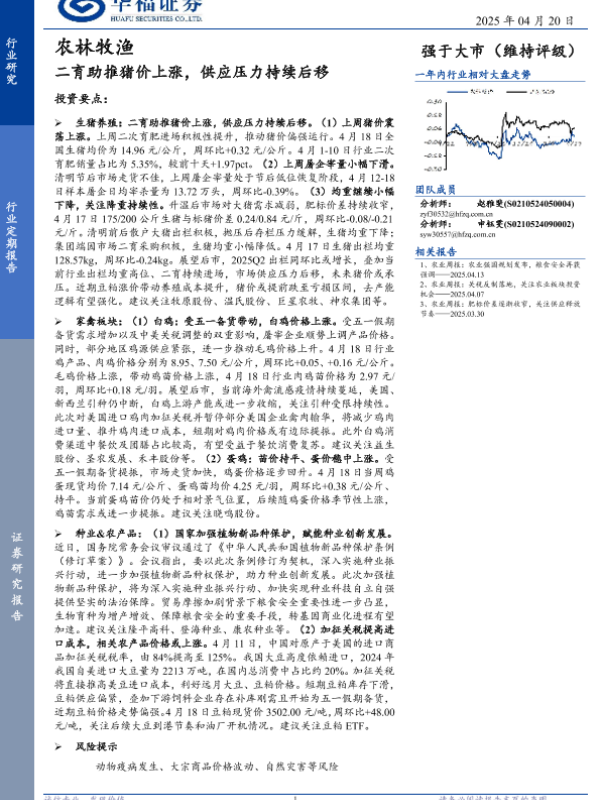 【华福证券】【20250420】农林牧渔行业定期报告:二育助推猪价上涨,供应压力持续后移-12页 行业研究