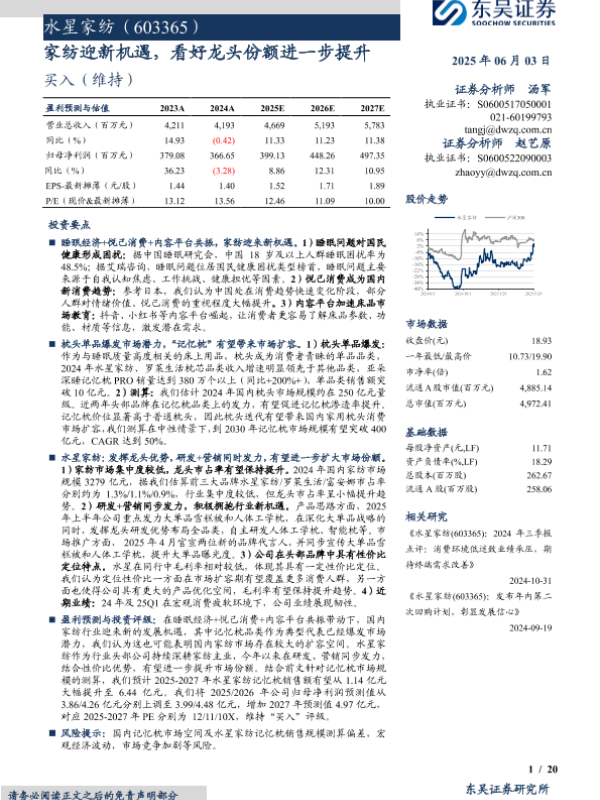 【东吴证券】【20250603】水星家纺家纺迎新机遇,看好龙头份额进一步提升-20页 公司研究