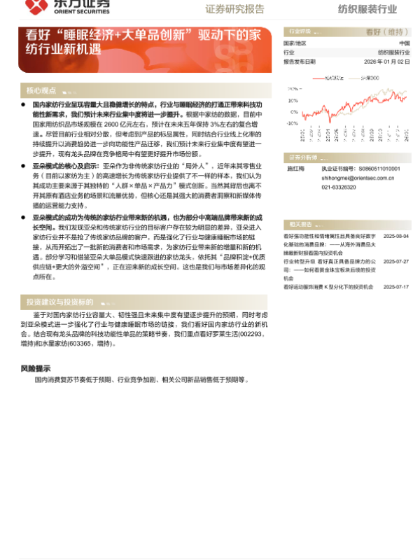 【东方证券】【202601】纺织服装行业深度报告——看好“睡眠经济+大单品创新”驱动下的家纺行业新机遇-27页 证券期货研究报告