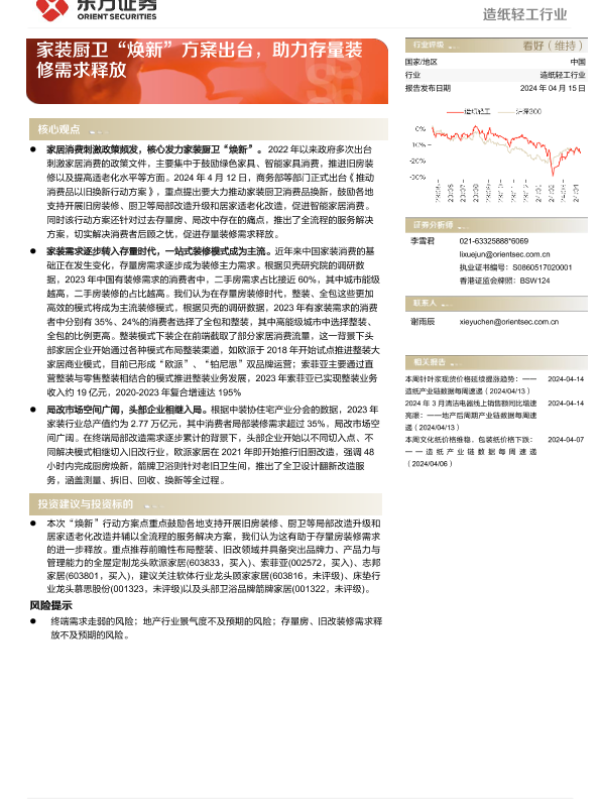 【东方证券】【20240415】造纸轻工行业:家装厨卫“焕新”方案出台,助力存量装修需求释放-10页 行业研究