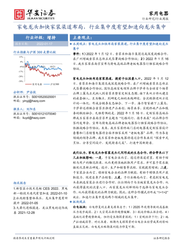 【华安证券】【20220117】家用电器行业周报:家电龙头加快家装渠道布局,行业集中度有望加速向龙头集中-13页 行业研究