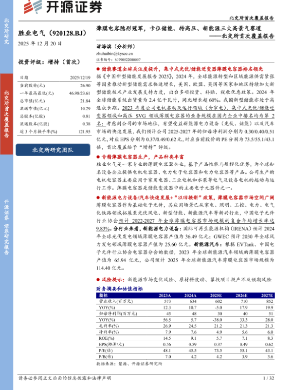 【开源证券】【202512】北交所首次覆盖报告:薄膜电容隐形冠军,卡位储能、特高压、新能源三大高景气赛道-32页 证券期货研究报告