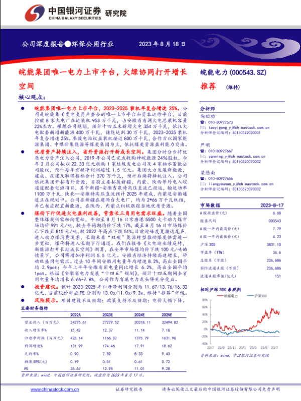 【银河证券】【20230818】皖能电力(000543)皖能集团唯一电力上市平台,火绿协同打开增长空间-22页 行业研究