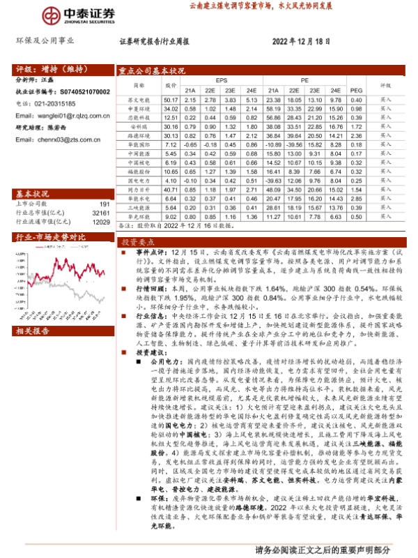 【国信证券】【20221218】环保与公用事业202212第3期:云南出台煤电调节容量市场,欧盟CBAM立法有序推进-30页 行业研究