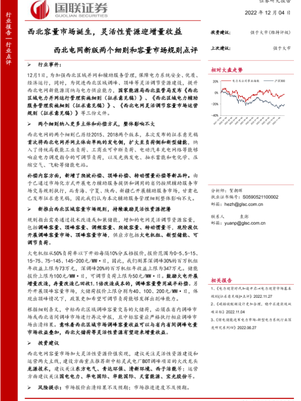 【国联证券】【20221204】西北容量市场诞生,灵活性资源迎增量收益-2页 行业研究
