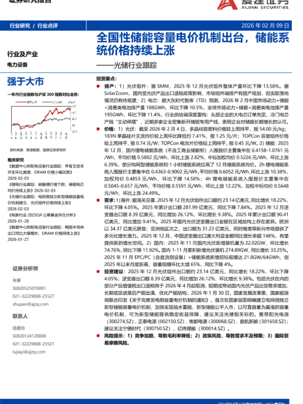 【爱建证券】【202602】光储行业跟踪:全国性储能容量电价机制出台,储能系统价格持续上涨-9页 证券期货研究报告