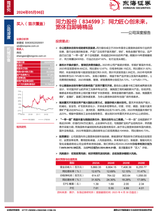 【东海证券】【20240506】同力股份(834599):同力匠心创未来,宽体自卸铸精品——公司深度报告-21页 行业研究