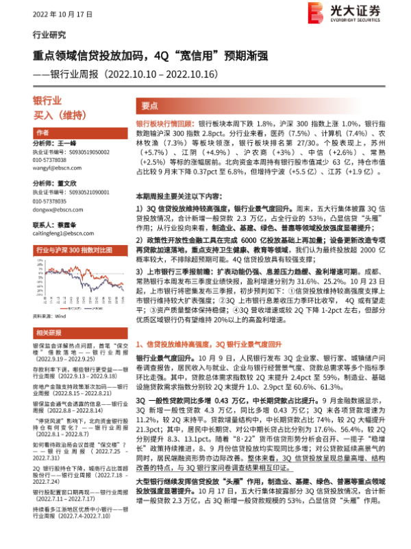 【光大证券】【20221017】重点领域信贷投放加码,4Q“宽信用”预期渐强-13页 行业研究