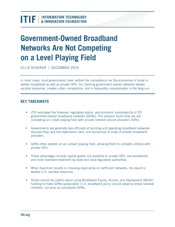 【Information Technology & Innovation Foundation (ITIF)】【202412】政府拥有的宽带网络没有在公平的竞争环境中竞争-16页 行业研究