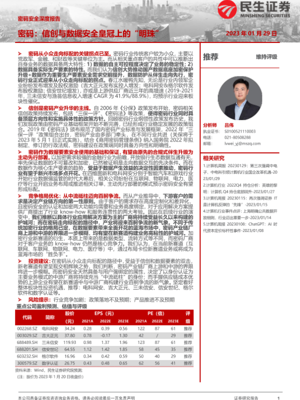 【民生证券】【20230129】密码安全深度报告:密码:信创与数据安全皇冠上的“明珠”-52页 行业研究