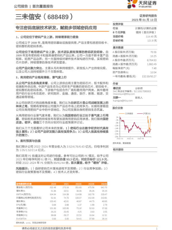 【天风证券】【20230113】三未信安-专注密码底层技术研发,赋能多领域密码应用-26页 行业研究