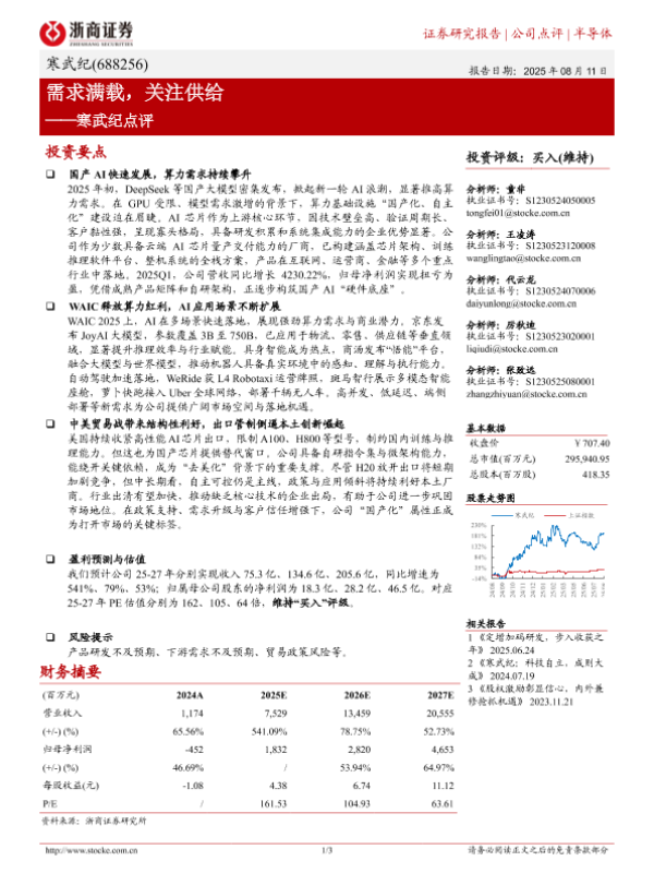 【浙商证券】【20250811】寒武纪点评:需求满载,关注供给-3页 证券期货研究报告