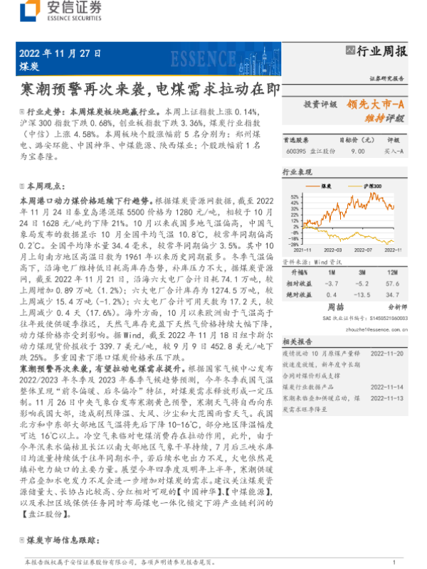 【安信证券】【20221127】煤炭行业周报:寒潮预警再次来袭,电煤需求拉动在即-14页 行业研究