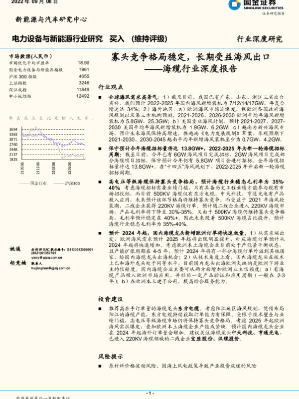 【国金证券】【20220908】寡头竞争格局稳定,长期受益海风出口——海缆行业深度报告-24页 行业研究