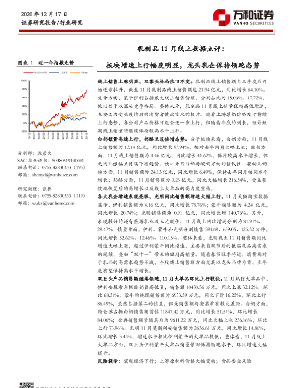 【万和证券】【20201217】乳制品11月线上数据点评:板块增速上行幅度明显,龙头乳企保持领跑态势-7页 行业研究