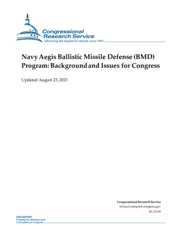 【Congressional Research Service】【20210823】国会研究服务部-美国海军宙斯盾弹道导弹防御(BMD)计划:背景和国会议题-37页 行业研究