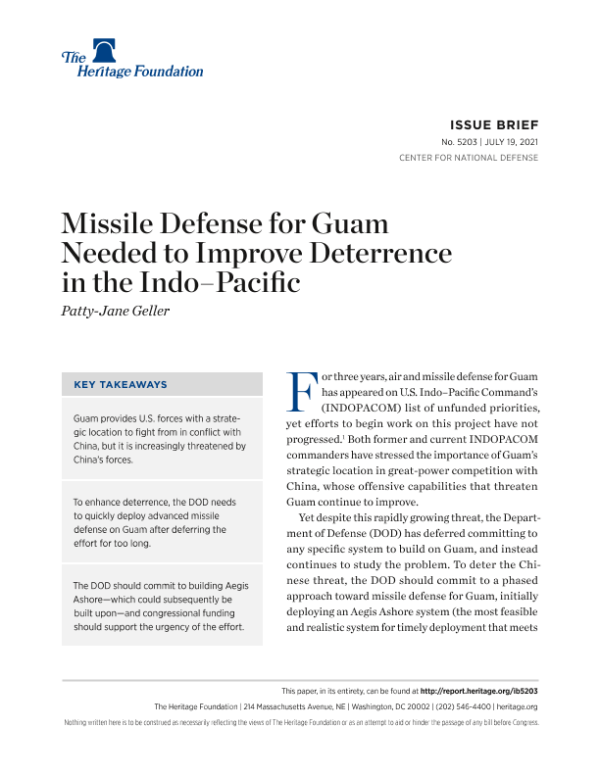 【The Heritage Foundation】【20210719】Missile Defense for Guam Needed to Improve Deterrence in the Indo–Pacific-8页 行业研究