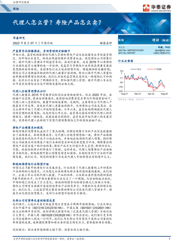 【华泰证券】【20220807】保险动态点评:代理人怎么管?寿险产品怎么卖?-9页 行业研究