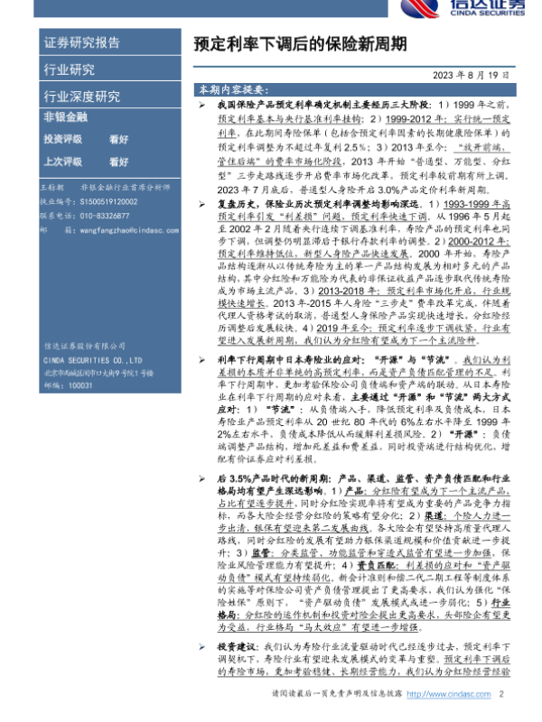 【信达证券】【20230819】非银金融行业:预定利率下调后的保险新周期-31页 行业研究