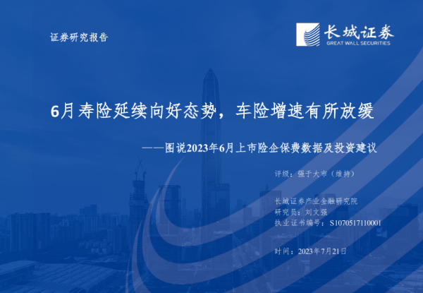 【长城证券】【20230721】图说2023年6月上市险企保费数据及投资建议-31页 行业研究