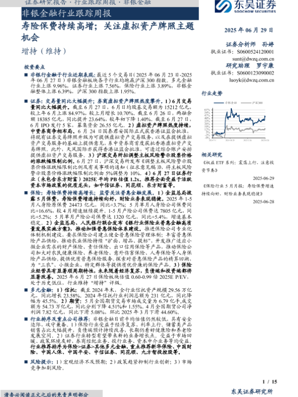 【东吴证券】【20250629】非银金融行业跟踪周报:寿险保费持续高增;关注虚拟资产牌照主题机会-15页 证券期货研究报告