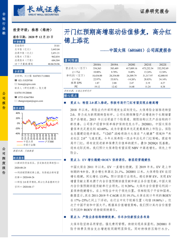【长城证券】【20201223】20201223-长城证券-中国太保-601601.SH-公司深度报告:开门红预期高增驱动估值修复,高分红锦上添花-20页 行业研究