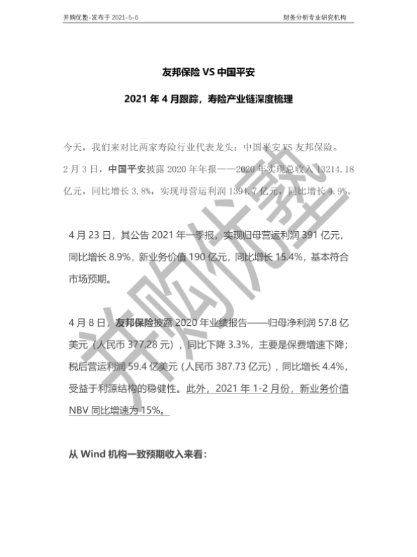 【并购优塾】【20210506】2021年4月跟踪,寿险产业链深度梳理:友邦保险VS中国平安-20页 行业研究