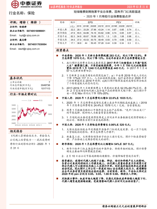 【中泰证券】【20200221】2020年1月寿险行业保费数据点评-2页 行业研究