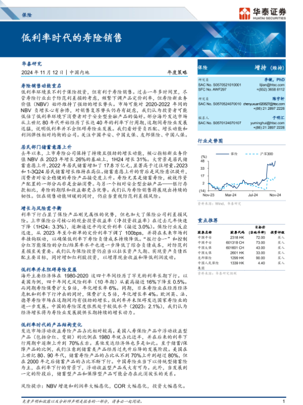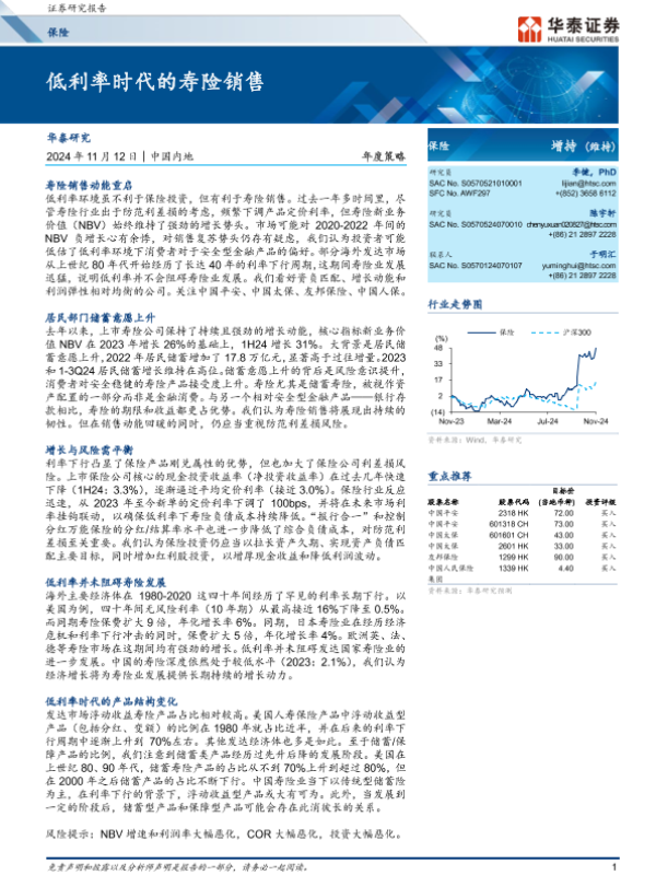 【华泰证券】【20241119】2024年11月19日更新-【华泰证券】保险行业年度策略:低利率时代的寿险销售-37页 行业研究