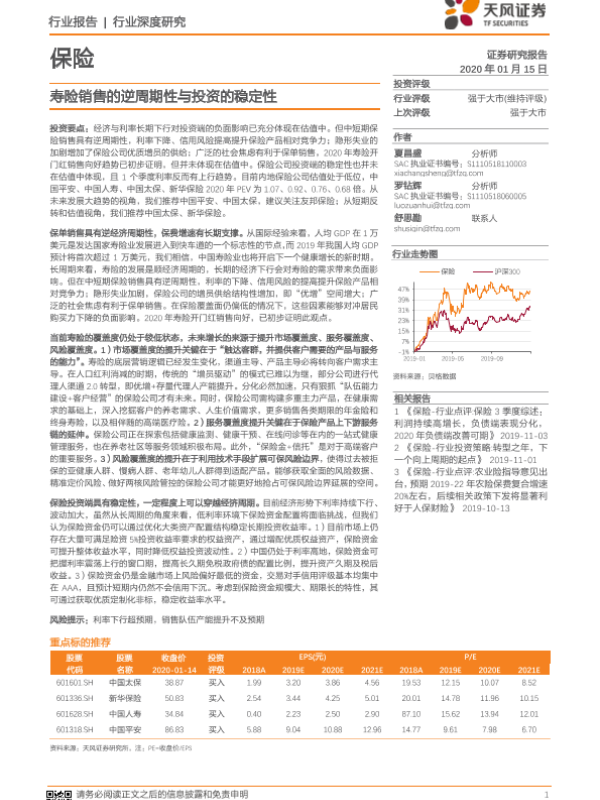 【天风证券】【20200115】寿险销售的逆周期性与投资的稳定性-23页 行业研究