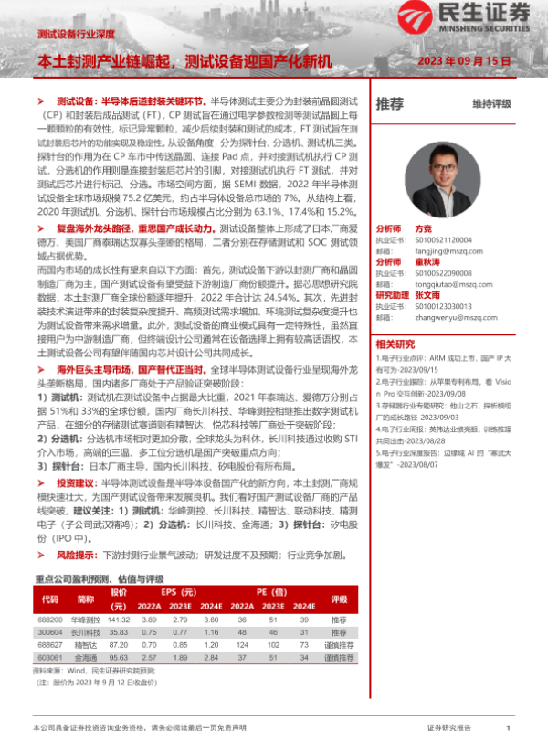 【民生证券】【20230915】测试设备行业深度:本土封测产业链崛起,测试设备迎国产化新机-54页 行业研究