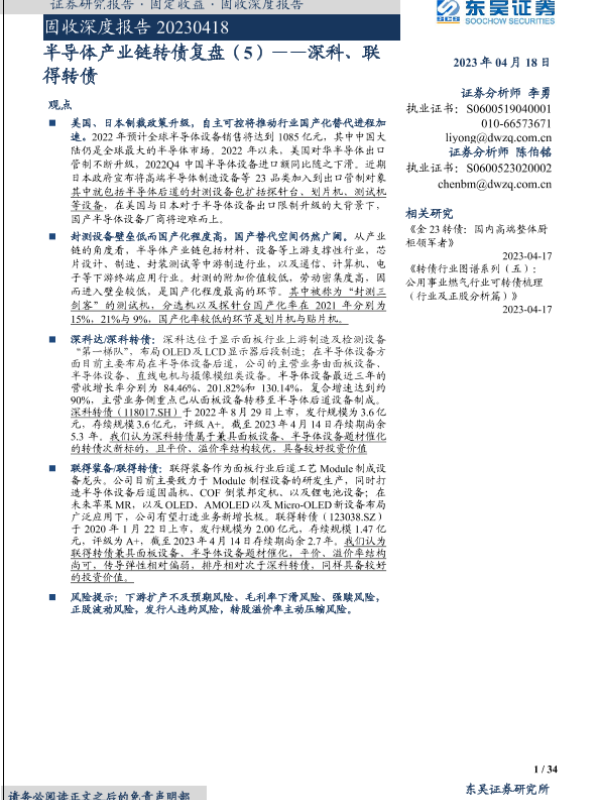 【东吴证券】【20230418】半导体产业链转债复盘(5):深科、联得转债-34页 行业研究