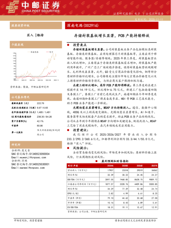 【中邮证券】【202511】存储封装基板增长显著,PCB产能持续释放-4页 证券期货研究报告