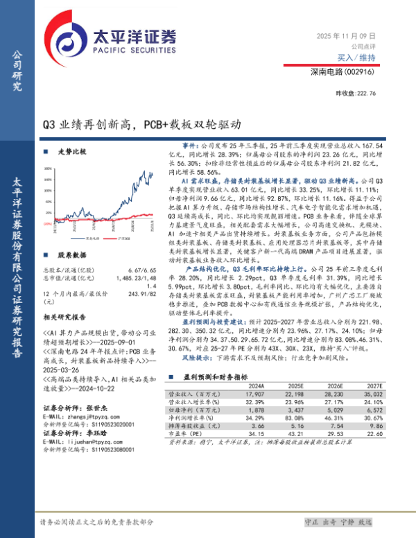 【太平洋证券】【202511】Q3业绩再创新高,PCB+载板双轮驱动-4页 证券期货研究报告