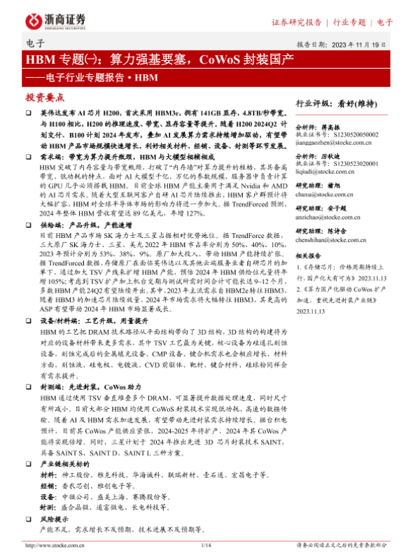 【浙商证券】【20231119】HBM专题(一):算力强基要塞,CoWoS封装国产-14页 行业研究