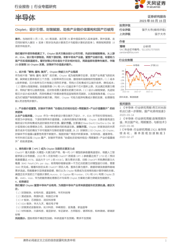 【天风证券】【20230315】20230315-天风证券-半导体行业专题研究:Chiplet:设计引领、封装赋能,助推产业链价值重构和国产芯破局-22页 行业研究