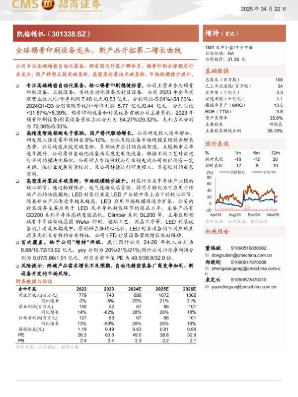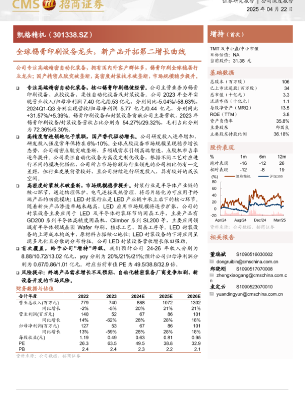 【海通证券】【20250422】凯格精机全球锡膏印刷设备龙头,新产品开拓第二增长曲线-29页 公司研究
