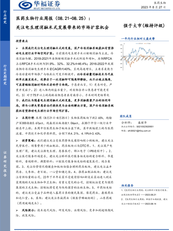 【华福证券】【20230827】医药生物行业周报:关注电生理消融术式发展带来的市场扩容机会-14页 行业研究