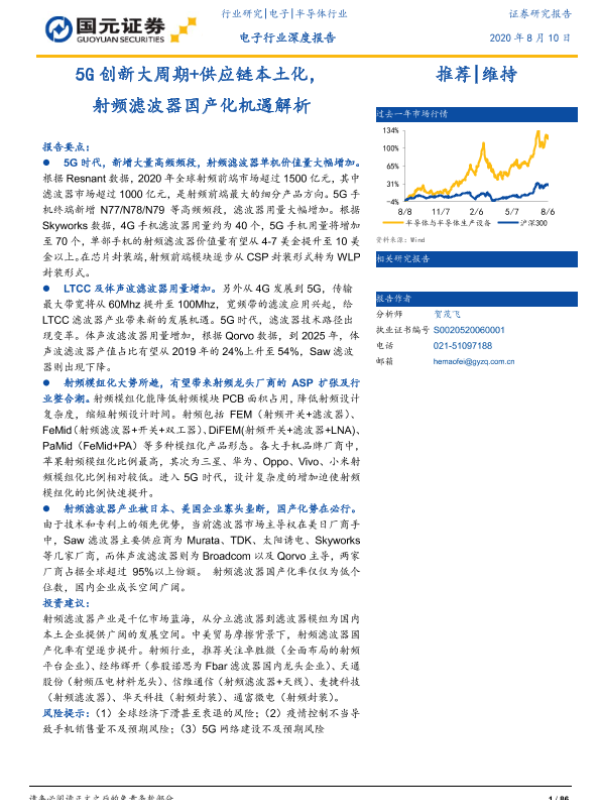 【国元证券】【20200810】5G创新大周期+供应链本土化,射频滤波器国产化机遇解析-86页 行业研究