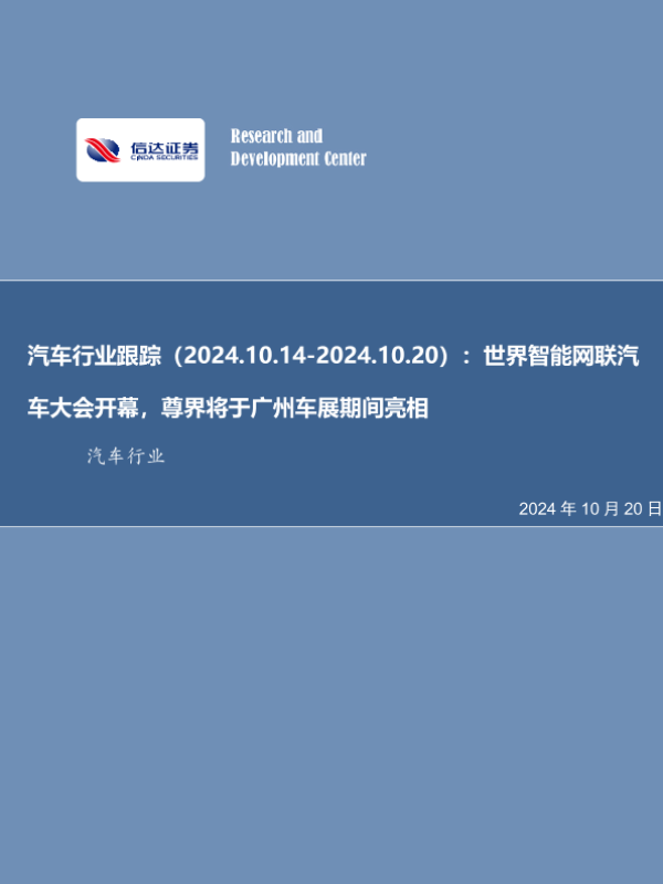 【信达证券】【20241020】汽车行业跟踪:世界智能网联汽车大会开幕,尊界将于广州车展期间亮相-21页 行业研究