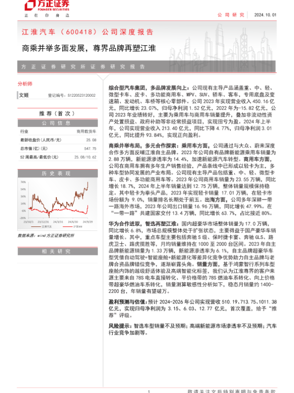 【方正证券】【20241001】江淮汽车(600418)公司深度报告:商乘并举多面发展,尊界品牌再塑江淮-31页 行业研究