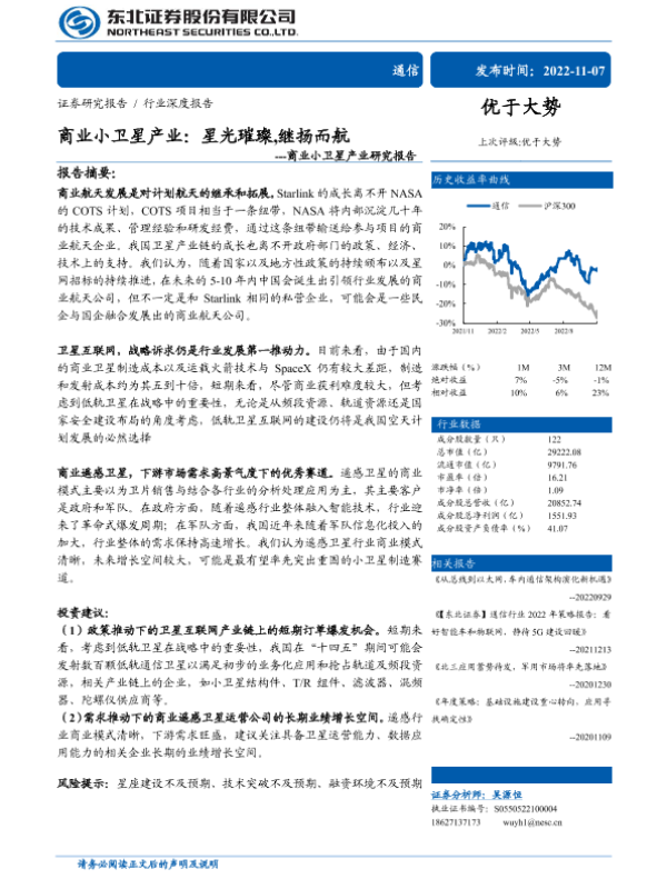 【东北证券】【20221107】通信行业商业小卫星产业研究报告:星光璀璨,继扬而航-55页 行业研究