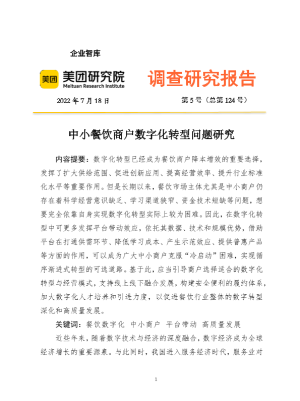 【企业智库】【20220718】中小餐饮商户数字化转型问题研究-19页 行业研究