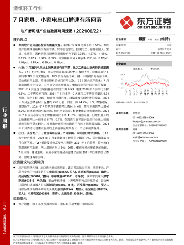 【东方证券】【20210823】7月家具、小家电出口增速有所回落-14页 行业研究