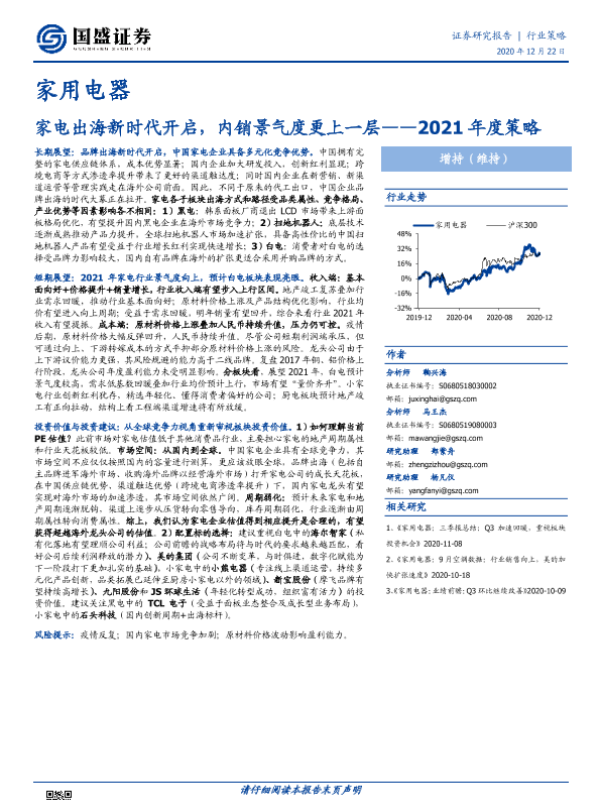 【国盛证券】【20201222】家用电器2021年度策略:家电出海新时代开启,内销景气度更上一层-33页 行业研究