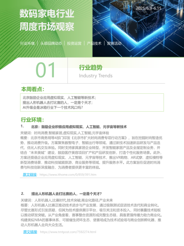 【艾瑞咨询】【20250616】iR-2025年第25周-家电行业周度市场观察-7页 行业研究