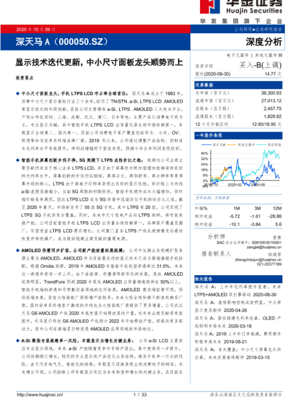 【华金证券】【20201009】显示技术迭代更新,中小尺寸面板龙头顺势而上-33页 行业研究