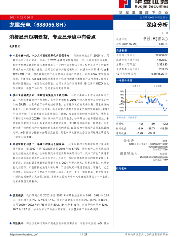【华金证券】【20210226】龙腾光电(688055.SH)消费显示短期受益,专业显示稳中有看点-27页 行业研究