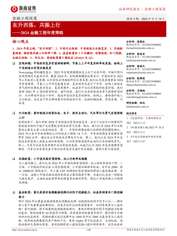 【浙商证券】【20231114】2024金融工程年度策略:东升西落,共振上行-40页 行业研究