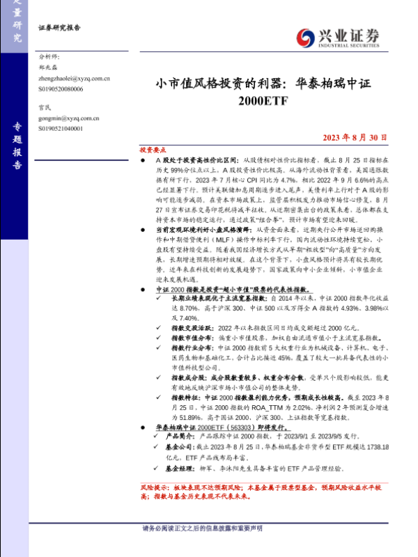 【兴业证券】【20230830】小市值风格投资的利器:华泰柏瑞中证2000ETF-21页 行业研究